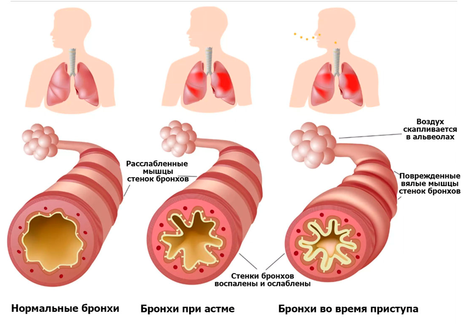 Астма — хроническое заболевание, которое характеризуется кратковременными приступами удушья, обусловленное спазмами в бронхах и отёком слизистой оболочки.